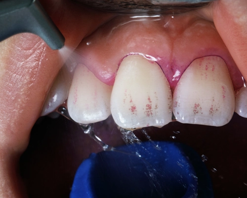 Le jet d’eau sous pression déloge les débris alimentaires coincés dans les espaces interdentaires et stimule la circulation sanguine gingivale.